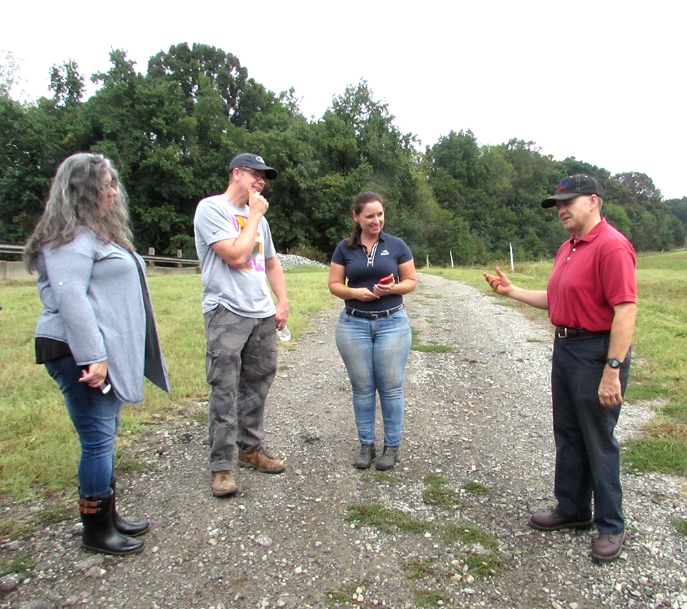 We walked down a gravel drive between the pastures. On our right, a small group of multicolored steers watched us warily: Angus crosses in all colors, hybrid White Charolais, and red Herefords. There are six pastures, each with between 20 and 56 steers. The Millses leave some pastures open to regrow and occasionally bush hog the weeds and reseed with a clover-fescue mix. Certain areas are managed intensely for conservation purposes, with earthen dams to guide water into the creek and prevent erosion. The cattle drink well water to keep the creek clean and preserve the vegetation on its banks. Mills Farm worked with the Natural Resource Conservation Service to manage their soil and water resources; they helped the Mills family install the wells to exclude the steers from the creek. Mills Family Farm is an Iredell County farmland preservation district.