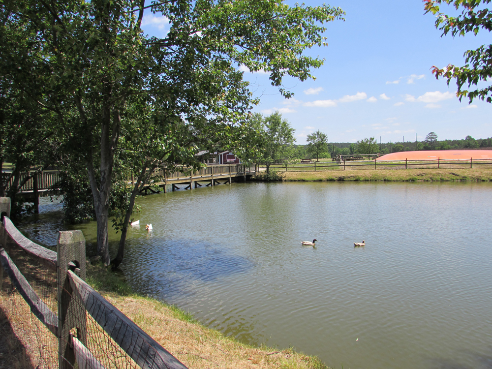 But we still hadn’t seen the farm’s most exciting attraction: the Back 40 Playground. The playground originated as a way for the farm to diversify its income through agritourism and school tours. It’s open in the fall, when it boasts a corn maze in addition to attractions like a giant underground slide, the “tot rocket zipline,” a cow barrel train, a hayride, a duck pond, and the Great Pumpkin Jump, a 2500-square-foot jumping pillow. The playground also opens for special events like the June Blueberry Music Festival (June 20, 2015). We waved goodbye to Russ and headed over to the pond. The playground sat deserted, awaiting the next festival. We took off our shoes and had a quick bounce on the Pumpkin Jump before beginning the ride home.