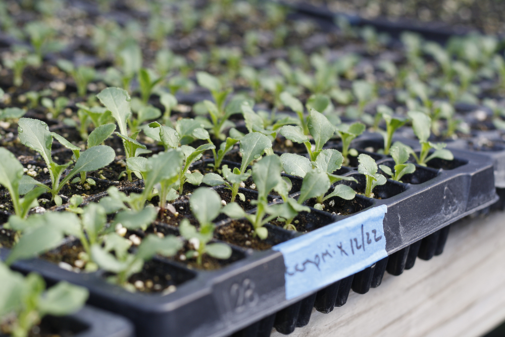 We walked past the ten or so tunnel houses: some are enclosed greenhouses, like the ones with the crates of tulips, while others are open-sided hoophouses, like the one with anemones and ranunculus growing right in the ground. Holding a giant bunch of cut daffodils, Leah names off the flowers coming in the season ahead: lisianthus, companulus, snapdragons, stock, grown inside; dianthus, queen anne’s lace, asters, bachelor buttons, corn cockle, saponaria, grown out in the fields. Some have already been sewn, and others are tiny seedlings in trays in a greenhouse.