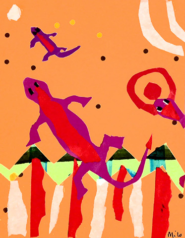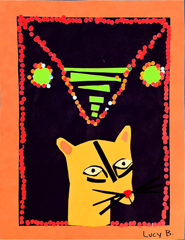 The current exhibition features the artwork of students in Michele Nelson’s 4th and 5th grade art classes at Estes Hills Elementary School. Inspired by Aboriginal Dot Paintings of Australia, these thirty two exciting collages feature animals as their subject matter, and use bright colors, dots and stripes as the essential motif.