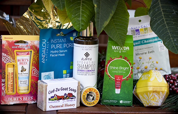Ready-to-give gift boxes are another idea. Weleda’s green and red-ribboned gift boxes include a box of holiday travel essentials, a winter skin duo, and the Shine Bright collection of creams. Burt’s Bees offers a gift box of lip balms, a classic bee-shaped tin of goodies, and a trio of tins of salves and balms, among others.