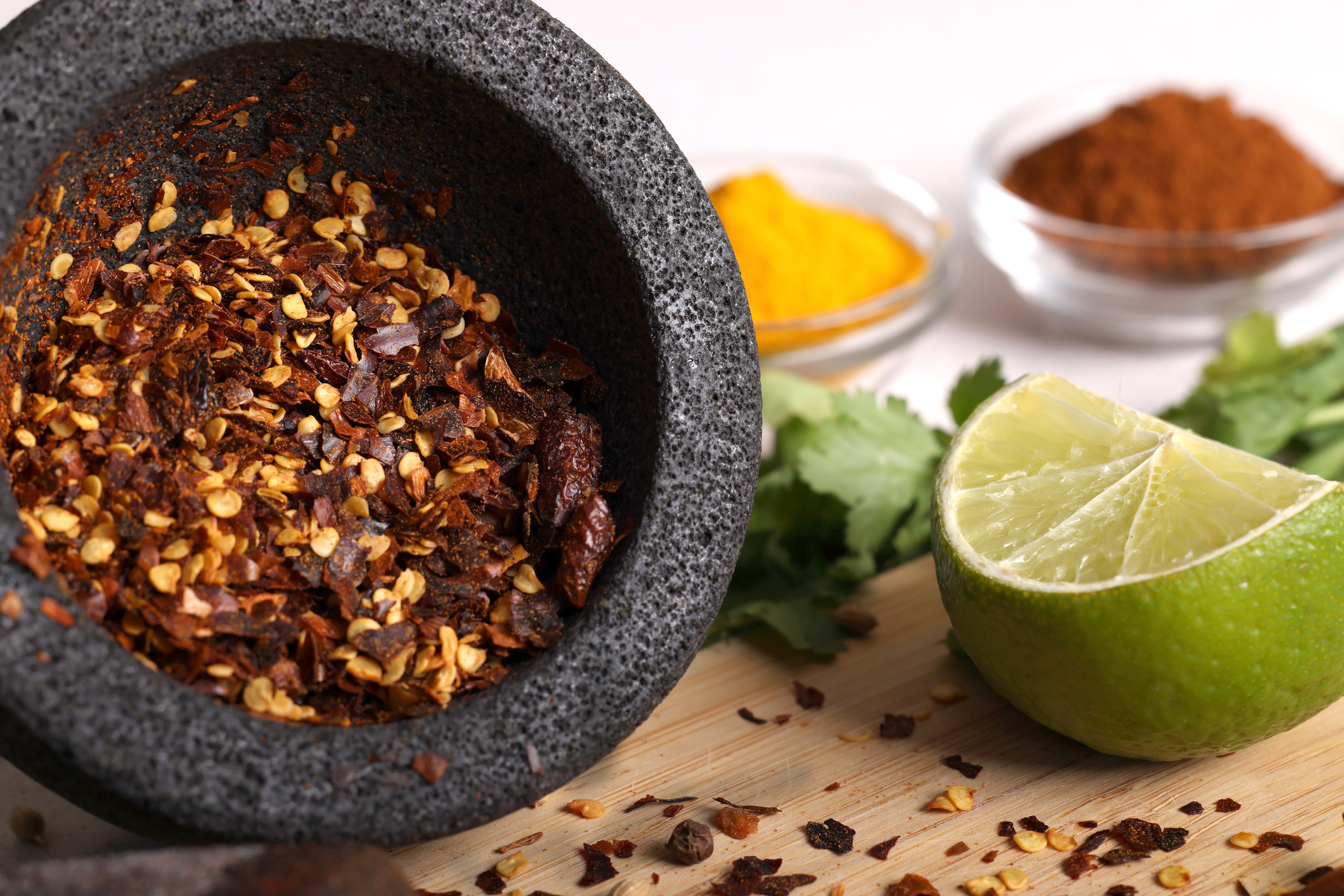 - Grind until lime zest has mixed with chili and you have a fine powder.