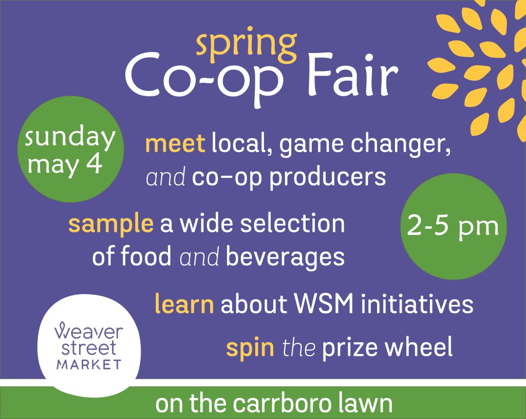 Due to inclement weather we’re postponing the Spring Co-op Fair to Sunday, May 18th.