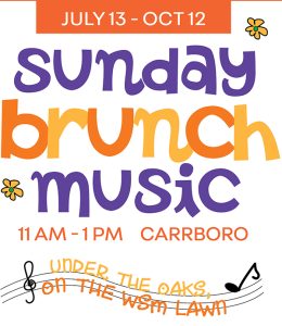Join us on the lawn in Carrboro every Sunday for free music, fresh air, and a delicious brunch. Enjoy listening to your favorite local bands while catching up with friends and neighbors. If the weather looks “iffy,” check our social media for a cancellation notice.
