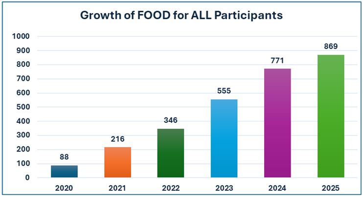 FFA participants report having greater access to fresh nutritious food for their families, especially in the current economic climate with inflation raising food costs at the same time SNAP benefits are being cut significantly.
