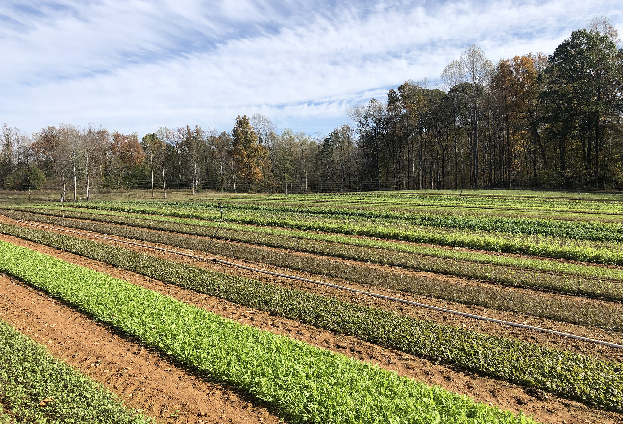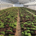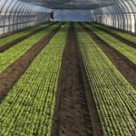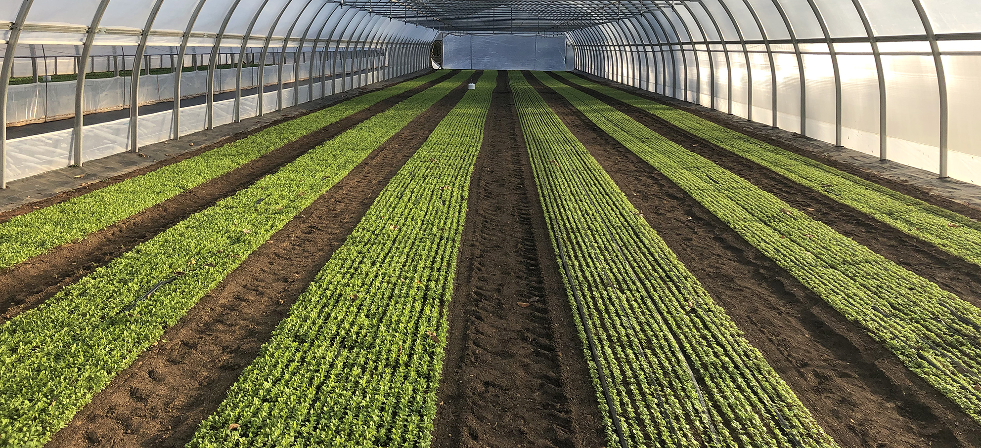 Brett’s farm in Hurdle Mills started with a propagation greenhouse and a few 200-foot unheated covered greenhouses, also known as high tunnels. At that point, he was raising greens both in the field and in the tunnels, but the subsequent years of extreme weather proved to be a challenge to growing the delicate greens. After many crop losses to heavy rains, most of Brett’s salad production has now moved entirely indoors. His covered production area has grown to one-and-a-half acres, plus another two acres outdoors for less-tender field crops.