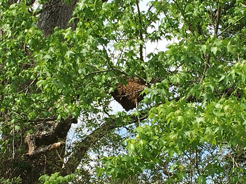 Spread over a few acres, they had rows of cabbage, lettuce, spinach, carrots, kale, strawberries, and more. There were also empty rows, rows covered in black plastic waiting to be planted, rows of plants covered with white row covers to keep out insect pests, and swathes with hay or red clover cover crop. Drip irrigation ran alongside the plants, and a row of beehives stood at the back side. Before we left, we were treated to seeing a swarm of bees in a tree next to the farm!