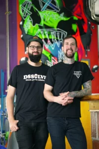 It has been a labor of love that embodies the nexus of art and fermentation for co-founders Vince Tursi and Mike Semenec. “We’re pouring our heart and soul into this,” emphasizes Tursi. “DSSOLVR is more than just another brewery, it’s the stripped-down, truest version of ourselves and our weirdest ideas, expressed through the medium of fermentation.” Tursi’s brewing background, including lead roles at Night Shift, Lord Hobo, and Burial, provides the fermentation