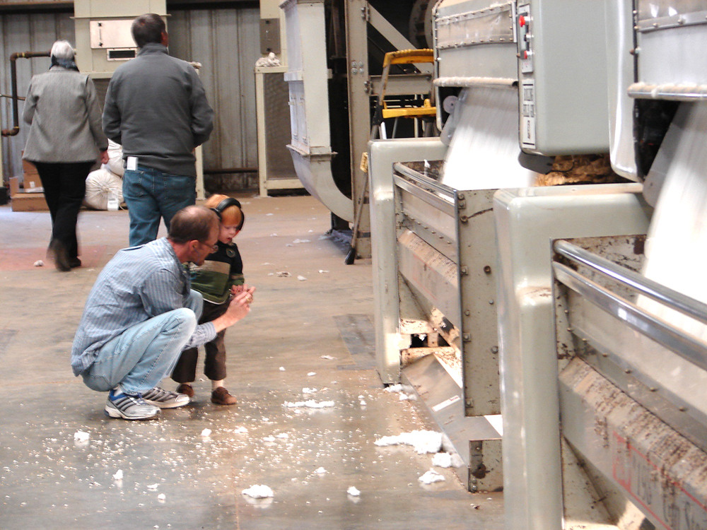 TS Designs in Burlington prints and dyes teeshirts made from cotton grown, ginned, spun, and sewn into shirts in North Carolina. On a tour of their facility, you’ll hear about the triple-bottom-line they use to measure success: People, Planet, and Profits. You’ll see everything from chickens, bees, and an organic garden for employees, to a toilet that flushes with the condensation from the AC and ice machines, to solar panels and a windmill. And you’ll learn about Cotton of the Carolinas, the program that works “from dirt to shirt” to create a totally local tee as well as 700 jobs in North Carolina.