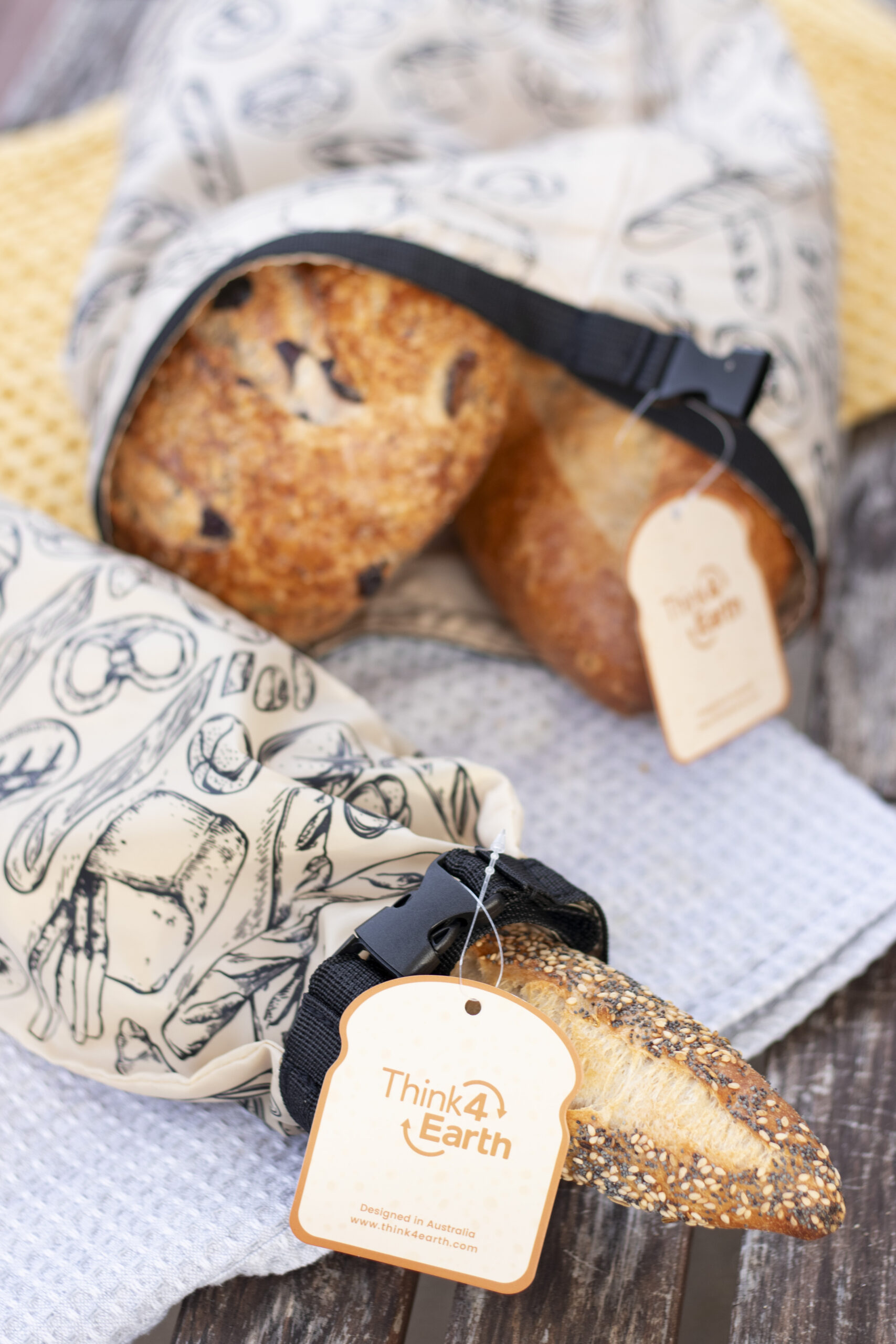 Proudly designed in Australia, Think4Earth Bread Bags are crafted from 100% recycled rPET plastic and use vegan-friendly processes. Each bag recycles 12 plastic bottles! They are machine washable making them perfect for everyday use. Learn more about the Think4Earth Bread Bags here.