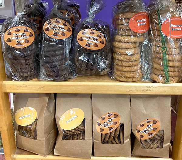 Our 12-pk Chocolate Chunk, Double Chocolate, Oatmeal and Peanut Butter cookies are now in a compostable wood-cellulose bag!