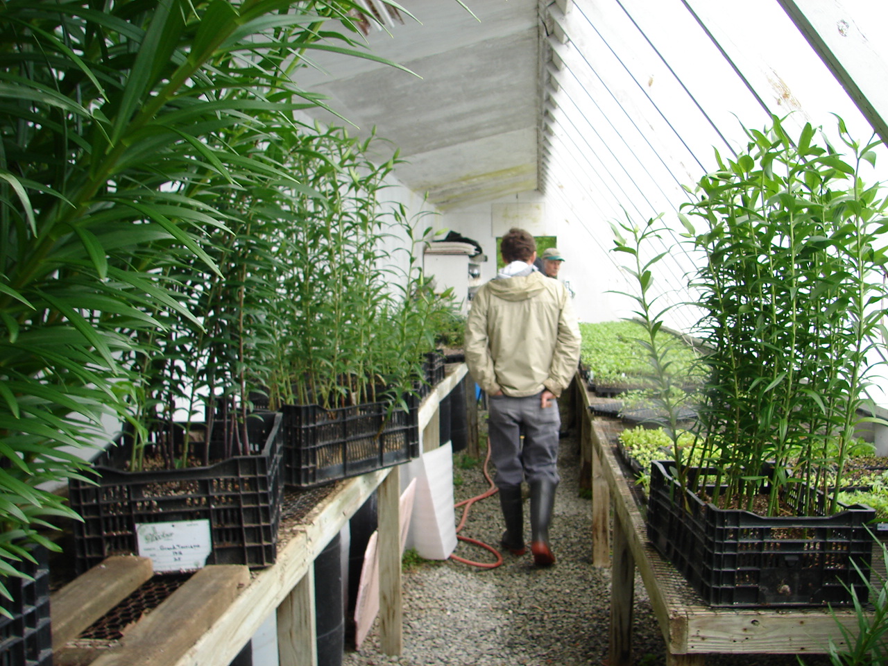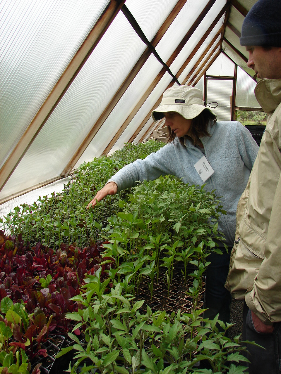 We caught the end of a tour at Turtle Run Farm, where farmer Kim Meehan was showing visitors the migrating worm compost pile. After they left, we asked about how best to store fresh produce. Kim launched into an explanation of “post-harvest” techniques and led us through the coolers and sheds used on the farm. She also showed us the greenhouse, where a home-made germinator heated newly planted seeds. Before we left, Kevin Meehan showed us a bin of fermenting alfalfa, a sweet-smelling fertilizer he invented on the farm.