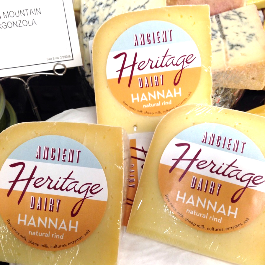 This month’s Special Delivery cheese is Ancient Heritage Hannah, a natural-rind semi-firm cheese made from sheep’s milk and raw cow’s milk; it is aged six months. This cheese is earthy and savory, with notes of honey, butter, and just a hint of nuttiness. It is luscious with a lactic, tangy finish. And, it won a 1st Place award at the American Cheese Society judging this year!