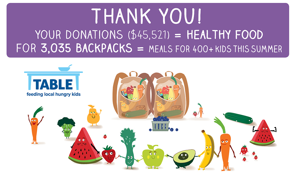 Your Donations Will Fill 3035 Backpacks with Healthy Food for TABLE’s Kids